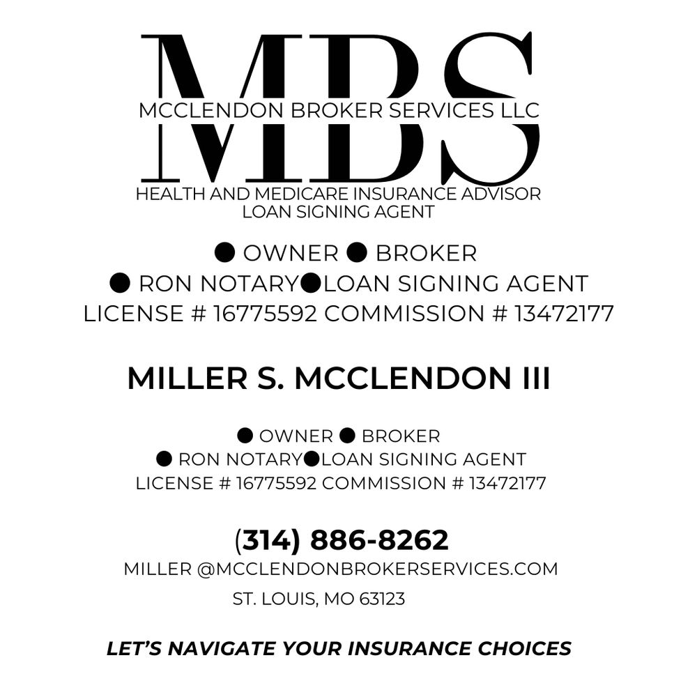 Miller S McClendon III - Owner/ Broker/ RON Notary miller@mcclendonbrokerservicesllc.com 314-886-8262